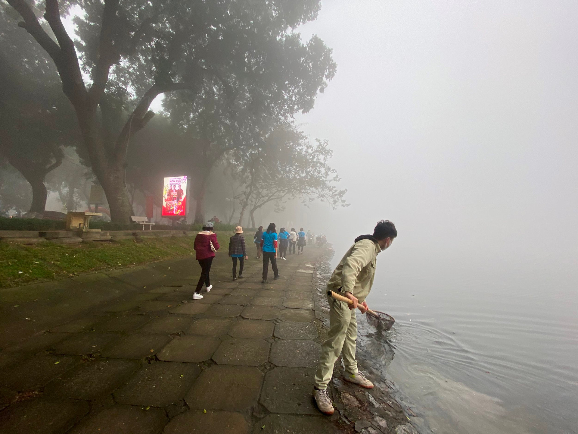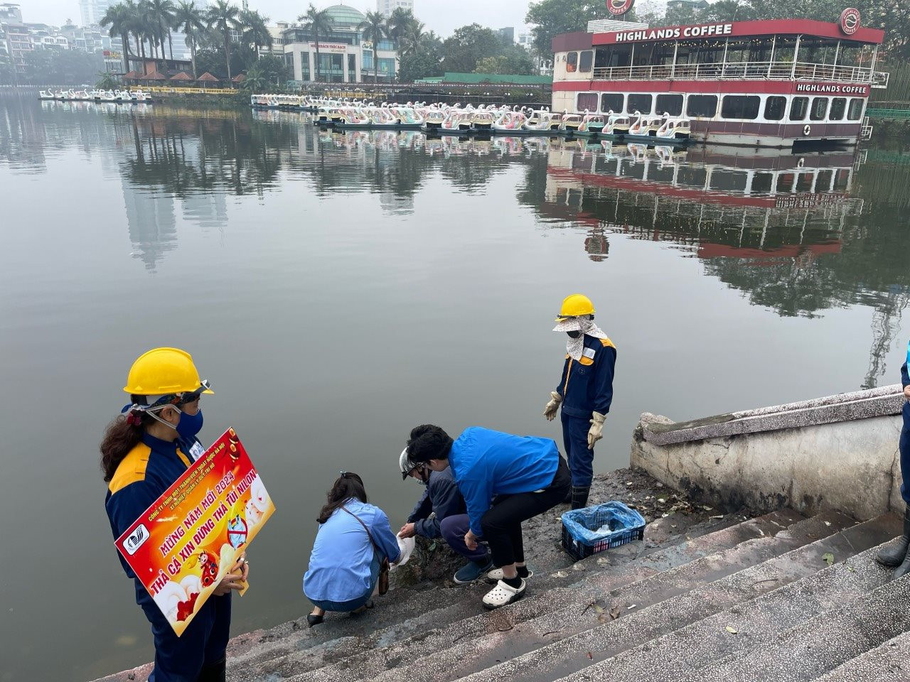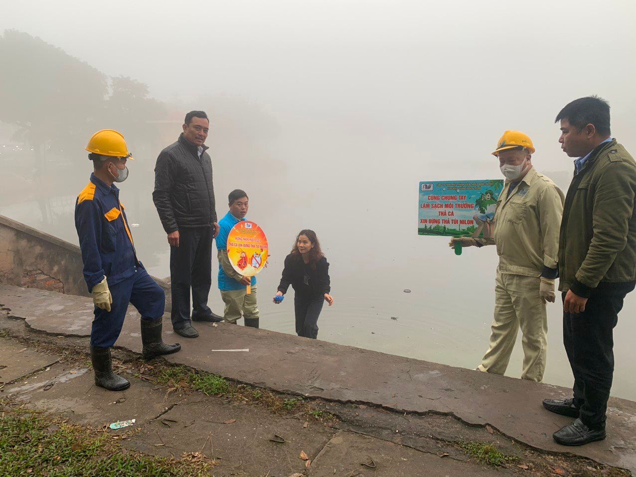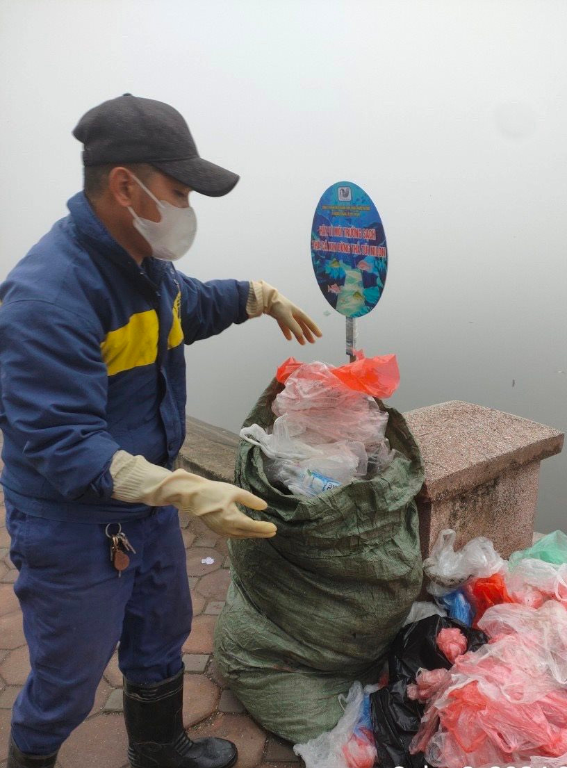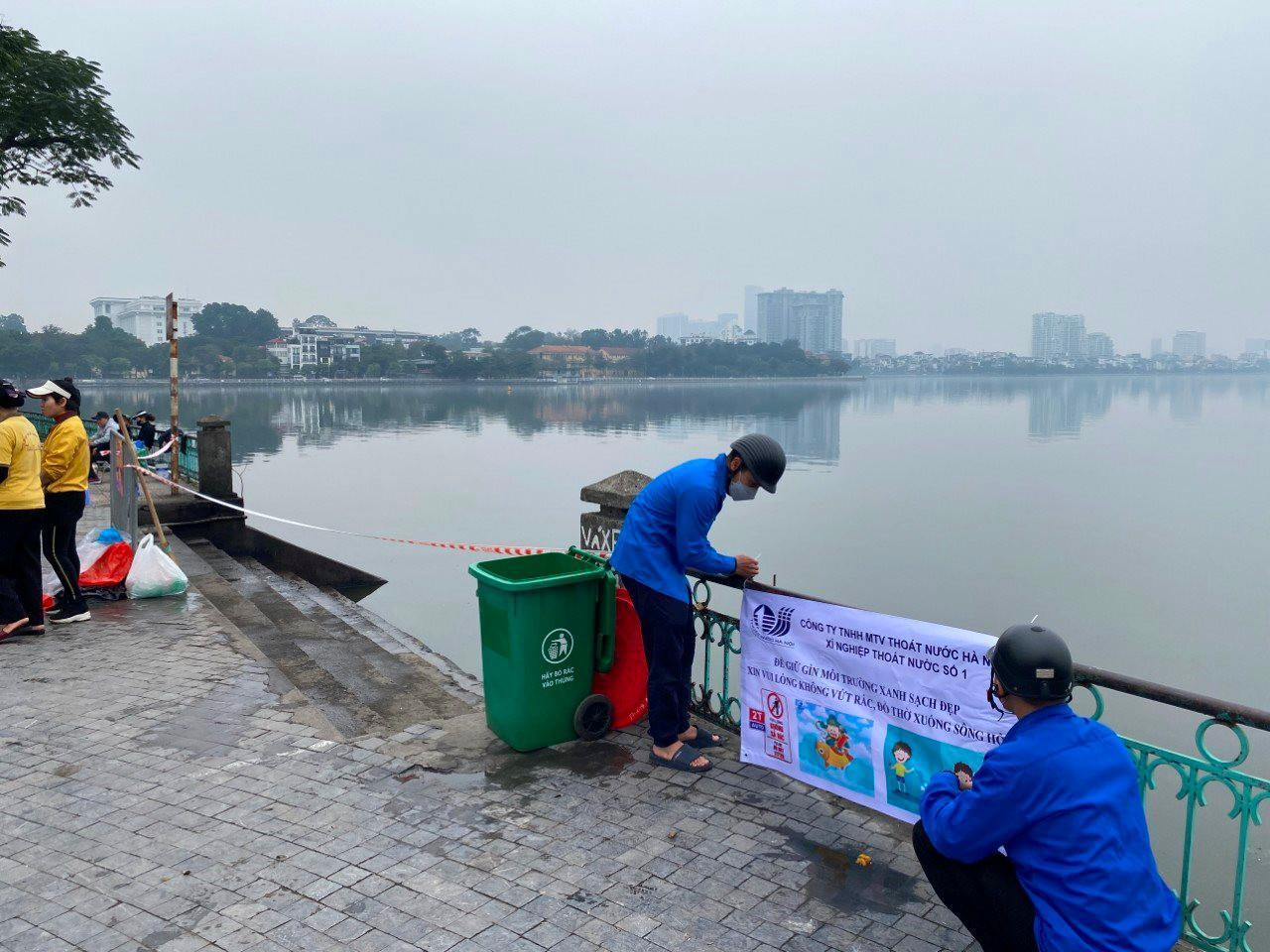 Sáng 2-2, tại các khu vực hồ Trúc Bạch, hồ Tây, hồ Đền Lừ, hồ Thuyền Quang, hồ Linh Đàm hay ven sông Tô Lịch…, công nhân các xí nghiệp thoát nước kết hợp với đoàn viên, thanh niên hướng dẫn người dân vứt túi nilon đúng nơi quy định, giữ vệ sinh, cảnh quan môi trường.