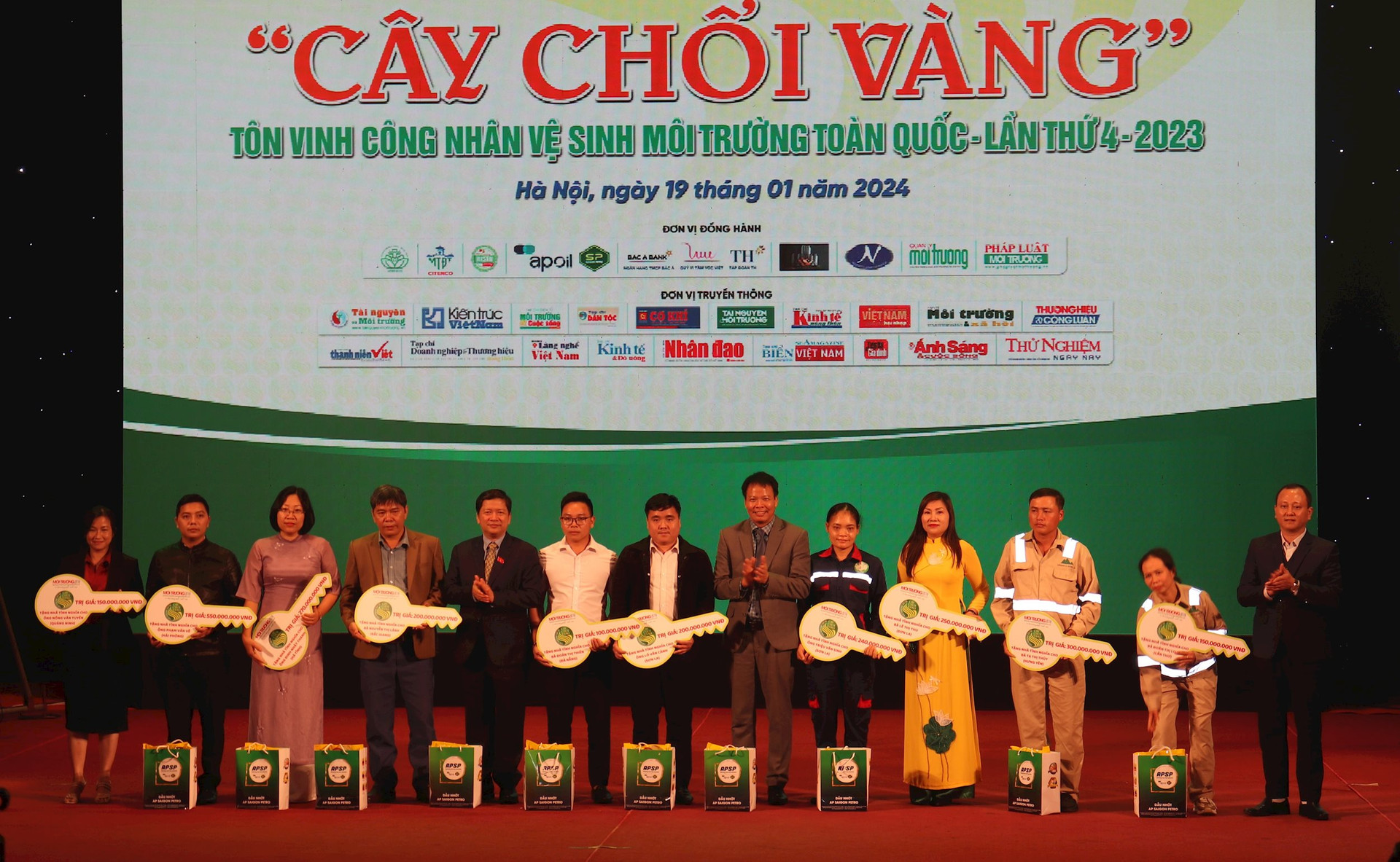 Sau gần 10 tháng phát động và xét chọn, Ban tổ chức đã chọn ra 40 công nhân vệ sinh môi trường tiêu biểu để tôn vinh và trao giải, bao gồm: 1 giải Kim cương trị giá 1 lượng vàng 9999; 10 giải Vàng, mỗi giải 2 chỉ vàng 9999; 11 giải Bạc, mỗi giải 1 đồng bạc trắng và 5 triệu đồng; 18 giải Đồng, mỗi giải 3 triệu đồng. Ngoài ra, mỗi giải đều kèm theo túi quà Tết đến từ Ban tổ chức và các nhà tài trợ.